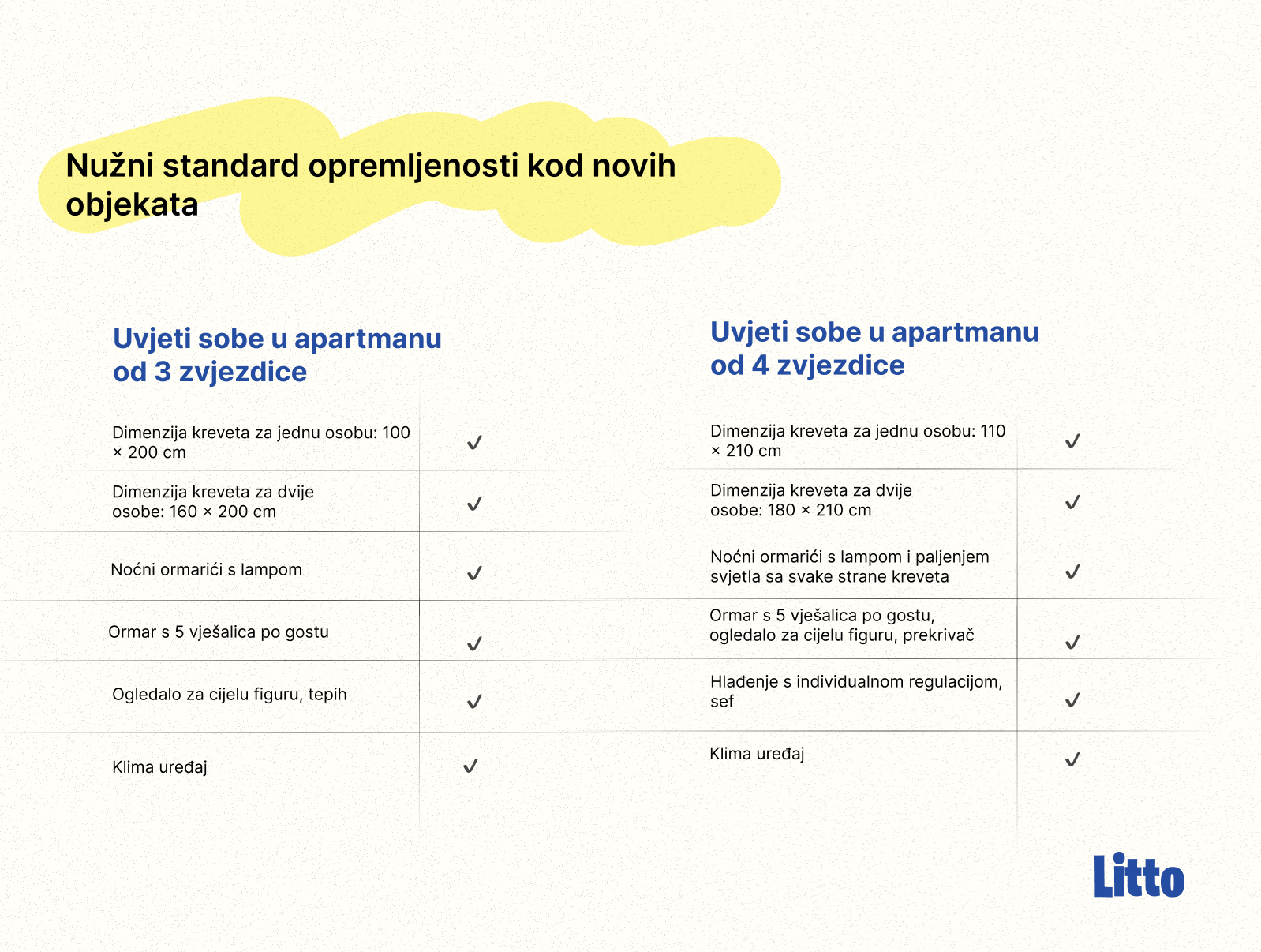 Detaljan prikaz i usporedba 3*,4* i 5* kategorija za objekte moguće je provjeriti na LINKU.